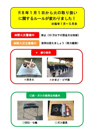 ▲令和8年1月1日から火の取り扱いに関するルールが変わりました!