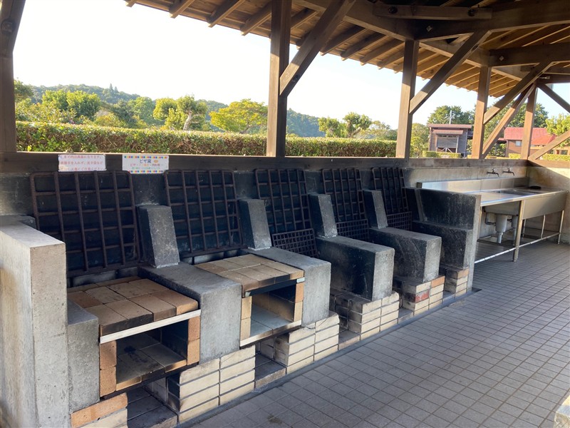 屋根付き。流し台も屋根付きで両サイドに1ヶ所づつあり。