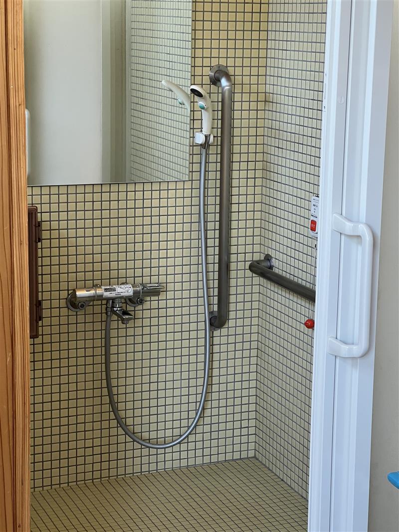 バリアフリーのシャワー室。中にはドライヤーもあります。