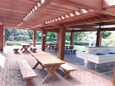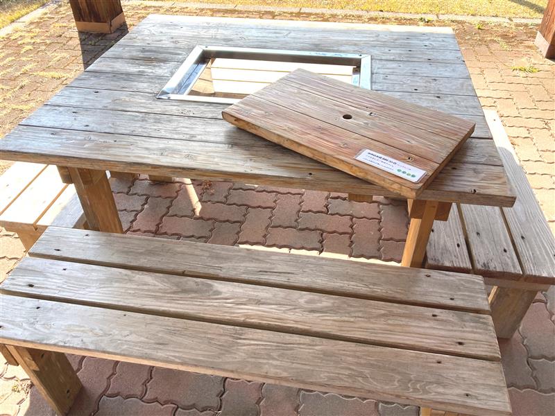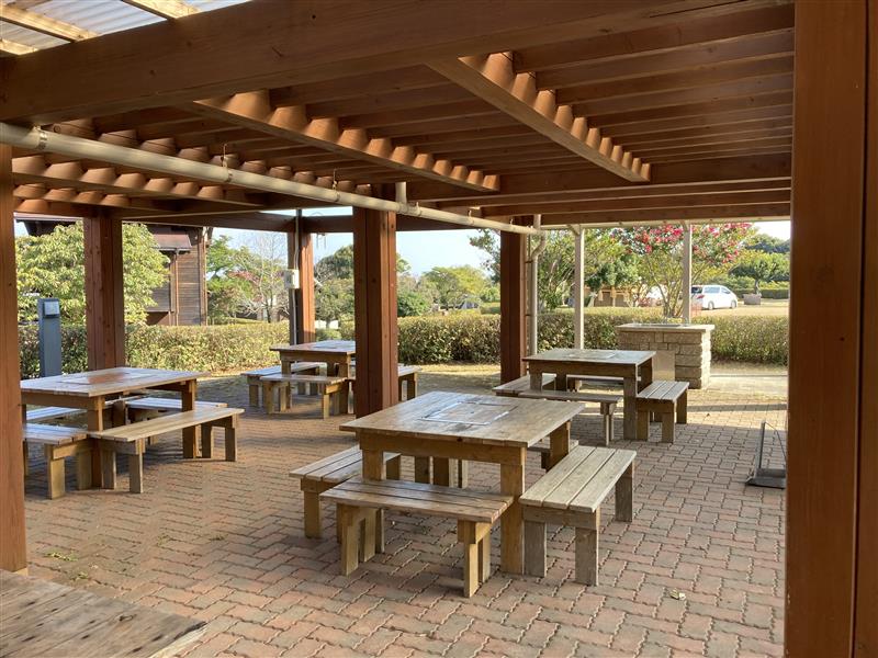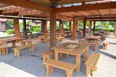 テーブル15台、長いすあり。宿泊・デイキャンプの方は自由にご利用いただけます。