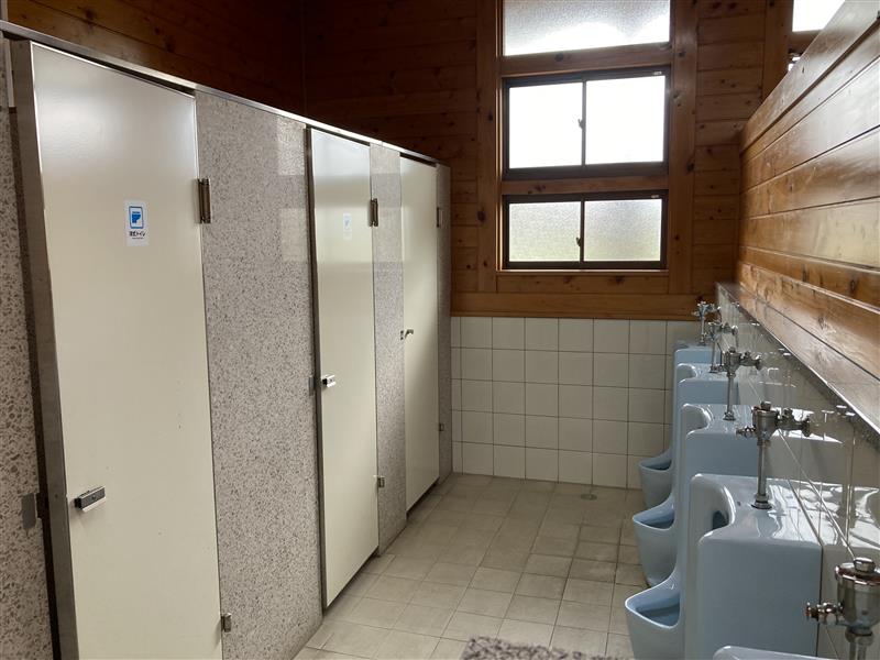 トイレ内にシャワールームがあり、男女ともにドライヤーがあります。