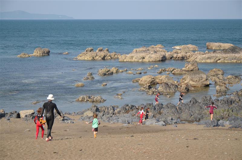 磯遊びにぴったり。遊泳も出来ますが、岩場が多く監視員も居ませんので、安全には充分ご注意下さい。