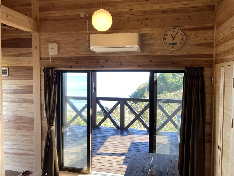 1ヶ所は木製の大きなテーブル4つとイスがあります。