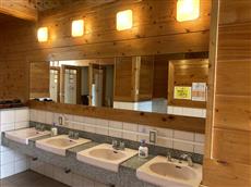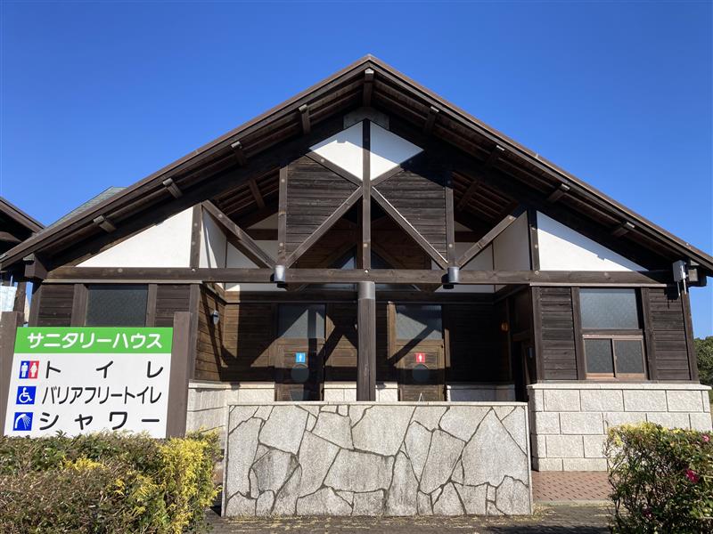 管理棟横にはトイレ(バリアフリートイレあり)・コインシャワー・コインランドリーがあります。